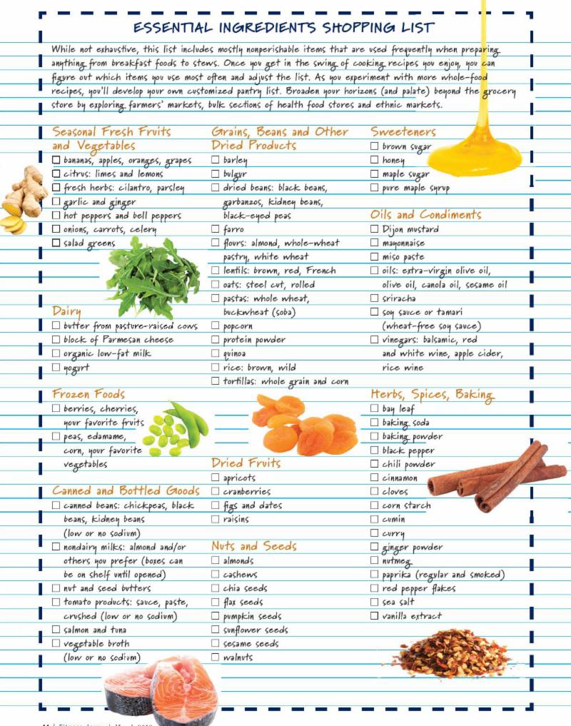 Consider the following simple shopping list as a starting point for start stocking your kitchen with all the elements to create wholesome and healthful meals that will line up with your fitness and wellness goals.